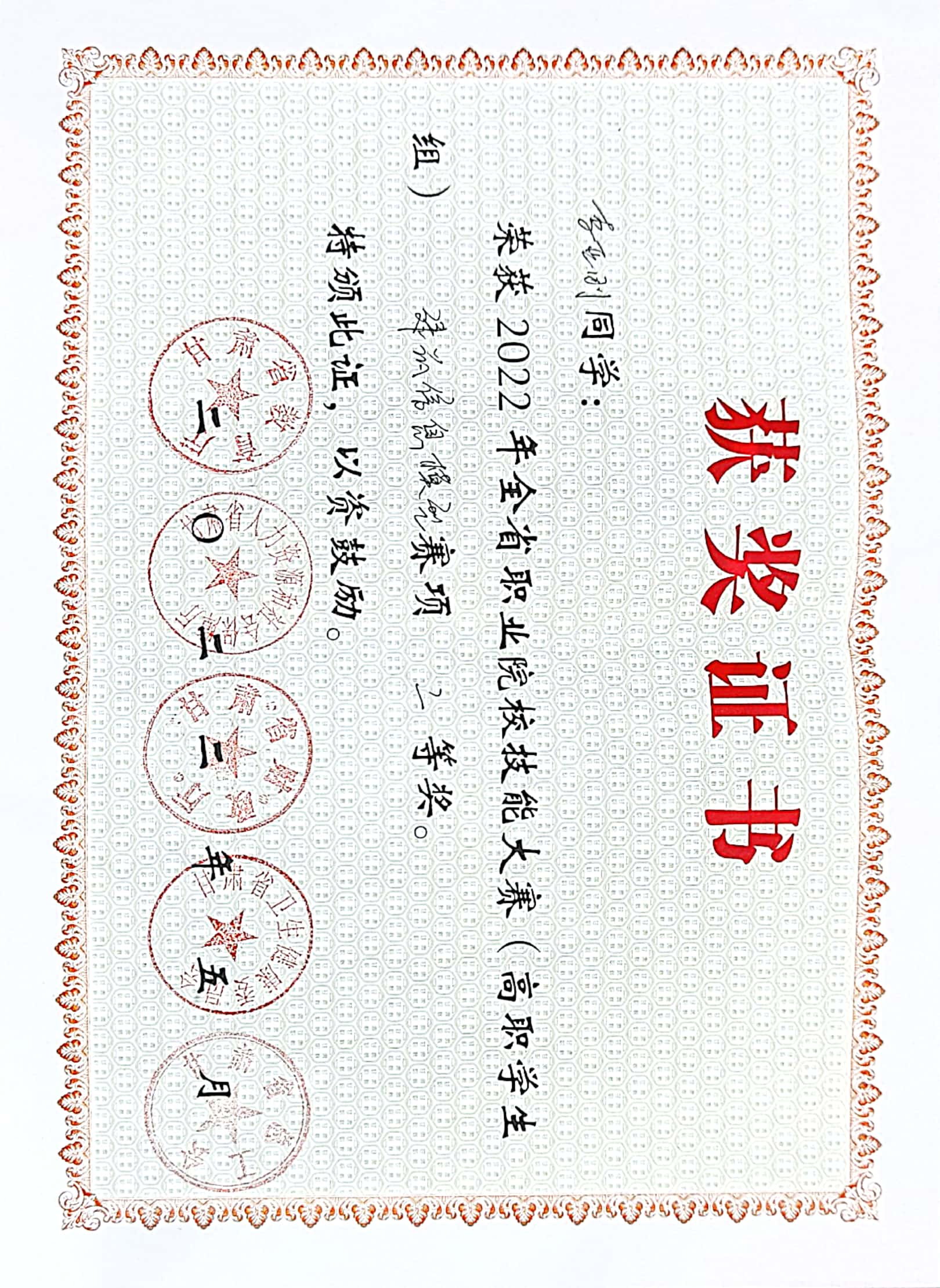 2022年学生技能竞赛荣誉